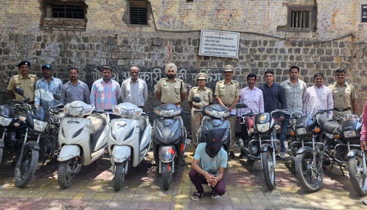 Pune-फरासखाना पोलीस स्टेशन हद्दीत वारंवार होणाऱ्या वाहन चोरीच्या अनुषंगाने वरिष्ठ पोलीस निरीक्षक सोो. प्रशांत भस्मे यांच्या आदेशाने दिनांक २२/०४/२०२४ रोजी तपास पथकातील पोलीस अधिकारी व अंमलदार पेट्रोलींग करत होते. त्यावेळी पोलीस अंमलदार वैभव स्वामी, प्रविण पासलकर, समिर माळवदकर, संदीप कांबळे हे वाहन चोरीच्या अनुषंगाने सीसीटीव्ही कॅमेरे तपासत होते. सीसीटीव्ही फुटेज मध्ये वाहन चोरी करताना मिळता जुळता व्यक्ती भाजी मार्केट येथे आल्याची माहिती पोलीस अंमलदार समीर माळवदकर यांना मिळाली.पथकाने सापळा रचून आरोपीला ताब्यात घेतले. त्याच्याकडे केलेल्या चौकशी त्याने फरासखाना पोलीस ठाण्याच्याहद्दीतील रविवार पेठ, नेहरू चौक, भाजी मार्केट, मंडई परिसरातुन दुचाकी चोरल्याची कबुली दिली. तसेच चोरलेल्यादुचाकी मुळगावी ठेवल्याचे सांगितले. पोलिसांनी 13 दुचाकी जप्त करुन गुन्हे उघडकीस आणले आहेत.आरोपीने फरासखाना -7, कोथरुड -2, चतु:श्रृंगी 1, विश्रामबाग पोलीस ठाण्यातील 3 असे एकूण 13 गुन्हे उघडकीस आले आहेत.