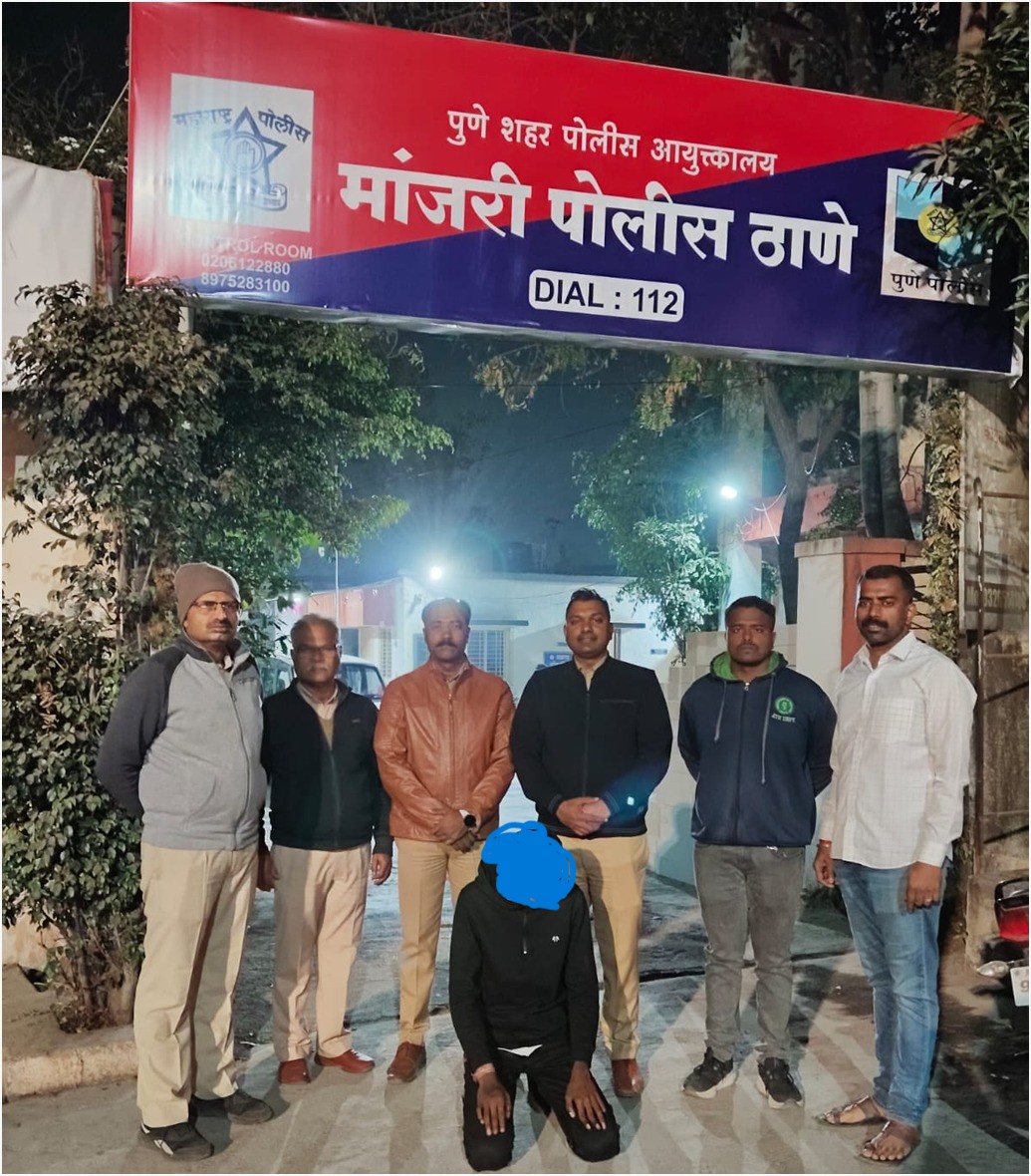वरिष्ठ पोलीस निरीक्षक, मांजरी पोलीस स्टेशन श्री. बाबासाहेब निकम, यांच्या मार्गदर्शनाखाली तपास पथक अधिकारी पोलीस उपनिरीक्षक महेश कवळे, पोलीस अंमलदार निखील पवार, प्रशांत दुधाळ, रविकांत कचरे, ज्ञानेश्वर चोरमले, माधव हिरवे यांच्या पथकाने कोंबींग ऑपरेशन दरम्यान मिळालेल्या खात्रीशीर माहितीच्या आधारे अभिषेक गजानन पाचपवार वय १९ वर्षे, रा. म्हसोबा वस्ती, मांजरी, पुणे यास सापळा रचून शिताफीने ताब्यात घेतले आहे. दाखल गुन्ह्याचा पुढील तपास सहा पोलीस निरीक्षक उमेश रोकडे, मांजरी पोलीस स्टेशन हे करीत आहेत.