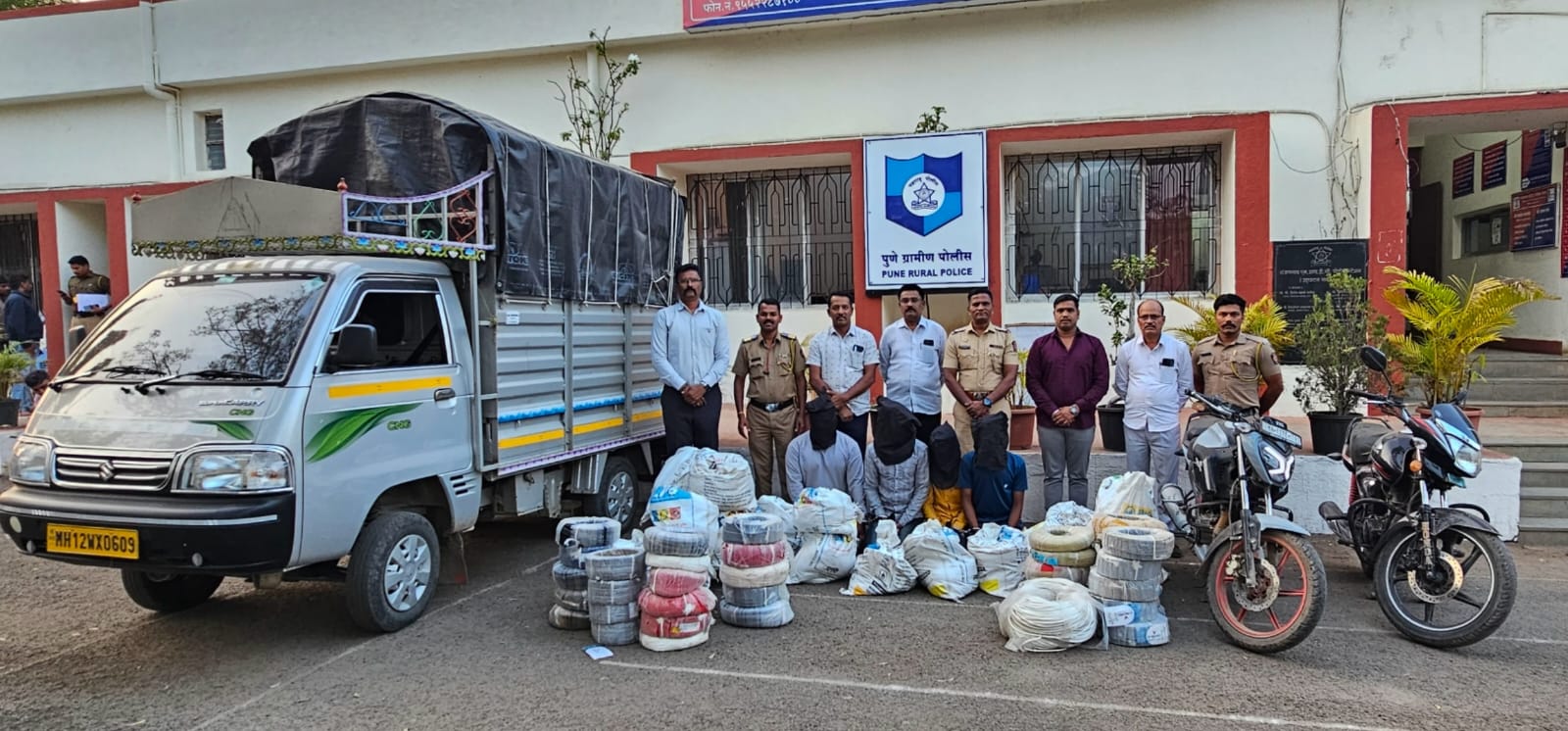 Pune-02/02/2026 रोजी रात्रीचे वेळी रांजणगाव एमआयडीसी पोलीस स्टेशन हहितील रांजणगाव, खंडाळे माथा ता शिरूर जि पुणे येथिल स्पर्श इंलेक्ट्रोनिक कंपनितिल केबल वायर बंडल कोणीतरी अज्ञात चोरट्यांनी चोरून नेले बाबत घटना घडली होती, त्यावरुन अर्केज रामराव शिंदे रा शिक्रापुर ता शिरुर जि पुणे यानी दिलेल्या फिर्यादी वरुन केबल चोरीचा गुन्हा दाखल करण्यात आला होता,सदर गुन्ह्यात पोलीस निरिक्षक महादेव वाघमोडे यांनी गुन्हा उघडकिस आणण्याचे दृष्टिने रांजणगाव एमआयडीसी पोलीस स्टेशनच्या तपास पथकातिल पोलीस उपनिरिक्षक अविनाश थोरात, सहा फौजदार दत्तात्रय शिंदे, पोलीस अमंलदार उमेश कुतवळ, योगेश गुंड, किशोर शिवणकर यांना कौशल्यपुर्वक आरोपींचा शोध घेउन गुन्हा उघड किस आणणे बाबत सुचना दिल्या होत्या.रांजणगाव एमआयडीसी पोलीस स्टेशनचे तपास पथका कडुन अज्ञात चोरट्याचा शोध सुरु होता, तपास पथकाने रांजणगाव, शिक्रापुर व परिसरातिल 50 पेक्षा जास्त सीसीटिव्ही तपासुन व तांत्रिक विश्लेषनाचे अधारे आरोपींचा शोध घेणे सुरु असताना पोलीस अंमलदार उमेश कुतवळ यांना त्यांचे बातमिदारा मार्फत बातमी मिळाली की, तळेगाव ढमढेरे येथिल 03 जण हे रात्रीचे वेळी कंपनीतील केबल वायर चोरुन घेउन जात असले बाबत माहिती मिळाली. तसेच तांत्रिक विश्लेषना चे आधारे गुन्ह्यातील अज्ञात चोरटे हे त्याच भागातील असल्याचे निष्पन्न झाल्याने रांजणगाव एमआयडीसी पोलीस स्टेशनवे तपास पथकाने आरोपी नामे १) श्री विकास संतोष पवार वय 27 वर्षे रा मुखई, इंदिरानगर ता शिरुर जि पुणे २) श्री रोहित गणेश शिंदे वय 20 वर्षे रा तळेगाव ढमढेरे ता शिरूर जि पुणे ३) श्री ओमकार फकि-या काळे क्य 20 वर्षे रा तळेगाव ढमढेरे ता शिरुर जि पुणे यांना तळेगाव ढमढेरे व मुखई ता शिरूर जि पुणे या ठिकाणा वरुन शिताफीने ताब्यात घेतले आरोपींकडे सखोल चौकशीत गुन्हा केल्याचे निष्पन्न झाल्याने त्यांना अटक करण्यात आली. सखोल चौकशीत आरोपींनी सदर चोरी केलेला माल हा फैजान इमरान खान वय 23 वर्षे रा सर्वे नं 53 फिरोज मंजिल, मक्का मजिद जवळ, भाग्योदय नगर, कोंढवा खुर्द पुणे याला विक्री केल्याची कबुली दिल्यावर त्यास अटक करुन त्याचे कडुन गुन्ह्यातील गेले माल व गुन्हा करणे करीता वापरलेली मालवाडु कॅरी व दोन मोटारसायकली असा एकुण 18,00,000/- रु कमितीचा मुद्देमाल जप्त करण्यात आले आहे. सदर आरोपी यांनी सदर कंपनित माहे आँगस्ट 2025 रोजी चोरी केल्याचे निष्पन्न झाले आहे, तसेच सदर आरोपी यांचे कडुन आणखीन गुन्हे उघड किस येण्याची शक्यता आहेस